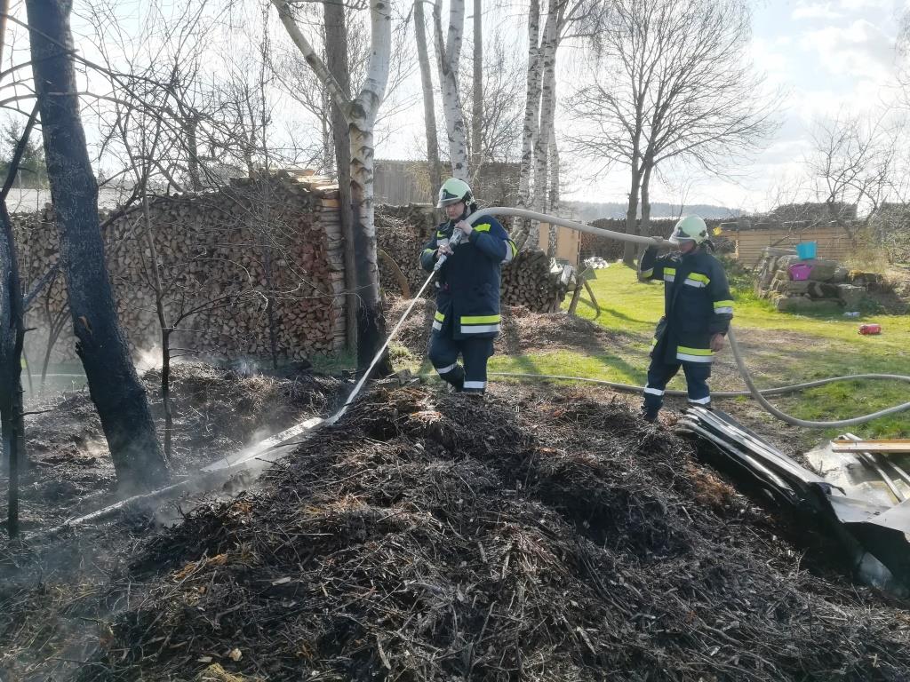 löschen zu können, mussten mehrere Haufen mit Gartenabfällen auseinander