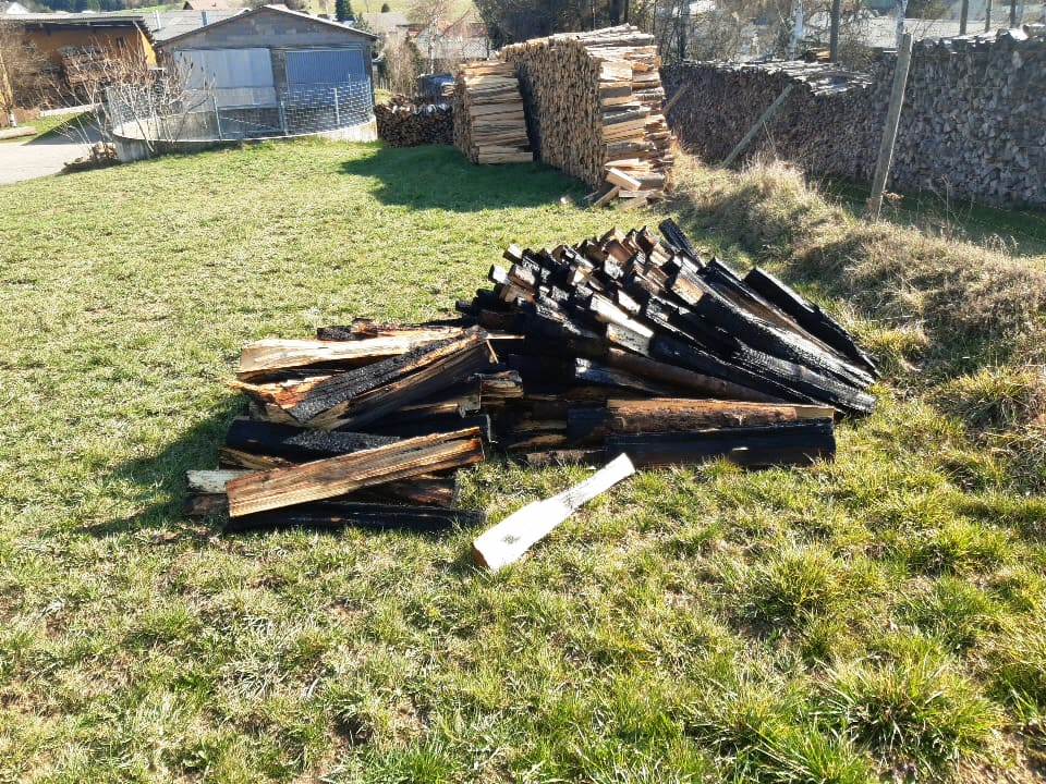 geteilt werden, sowie der betroffene Abschnitt des Holzstoßes abgeräumt