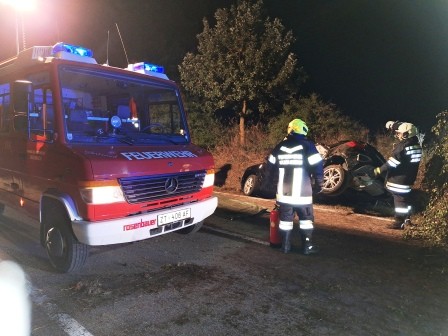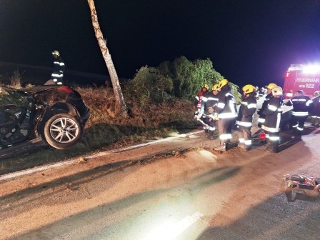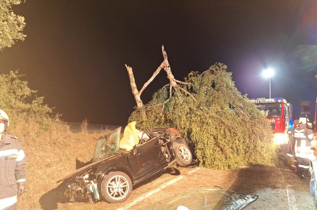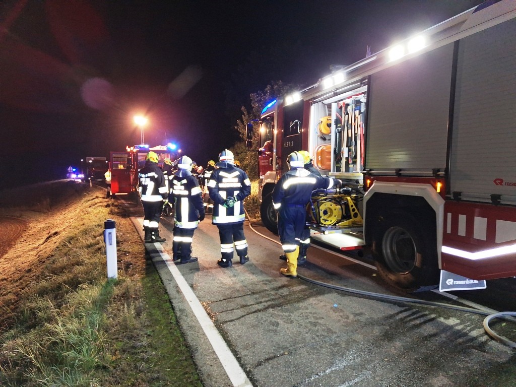 Mit dem Einsatzstichwort "Verkehrsunfall mit Menschenrettung – PKW gegen Baum" wurden am 3.10.2025 um 1:06 Uhr die Feuerwehren Jagenbach, Dorf Rosenau und Schloß Rosenau alarmiert.