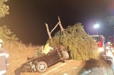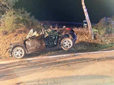 wurde danach gegen einen Baum geschleudert und kam im Straßengraben zum