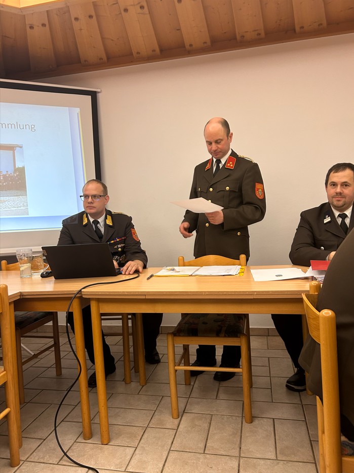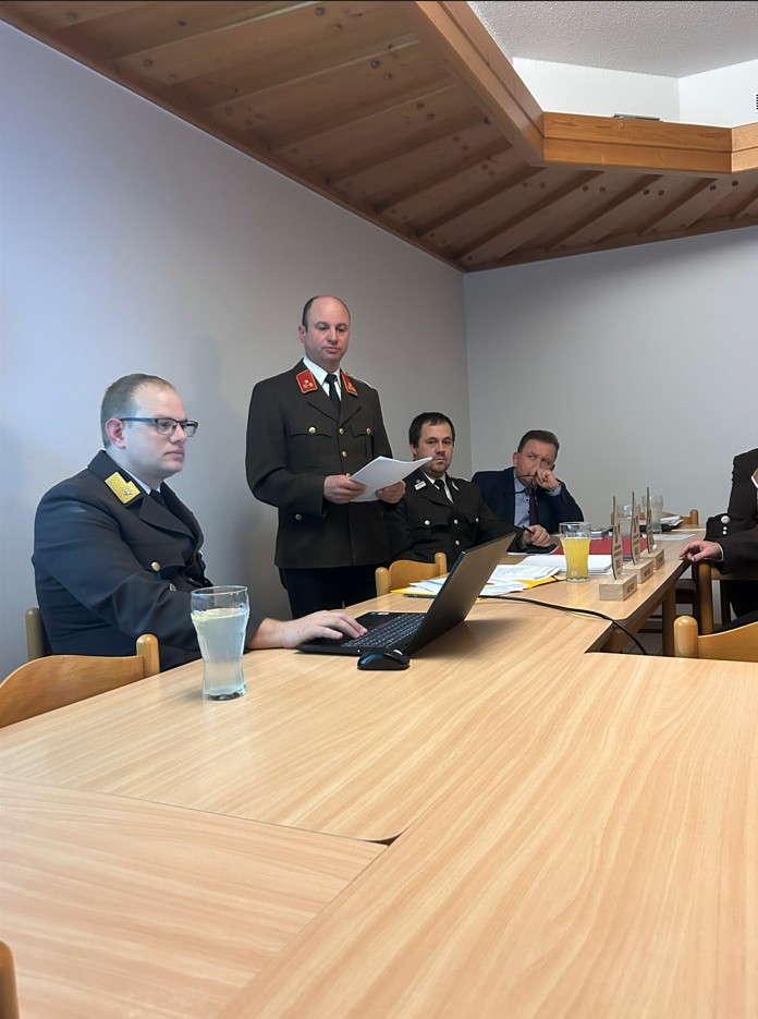 Kommandant Harald Thaler eröffnete die Versammlung mit dem Totengedenken und berichtete im Anschluss an über die Einsätze, Übungen, Kurse und Tätigkeiten im Jahr 2025. Im Anschluss an seinen Bericht übergab HBI Harald Thaler, zur Durchführung der Wahl, den Vorsitz an Bürgermeister Franz Mold.