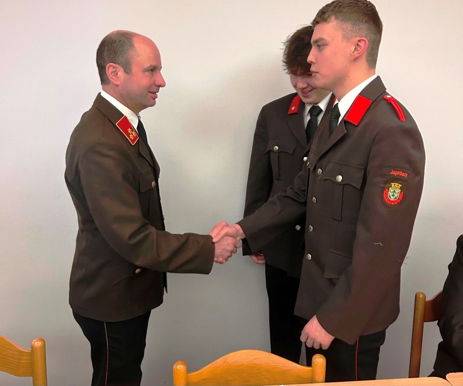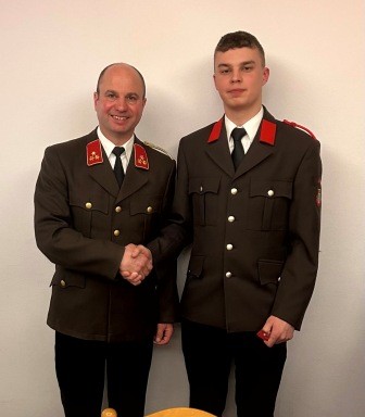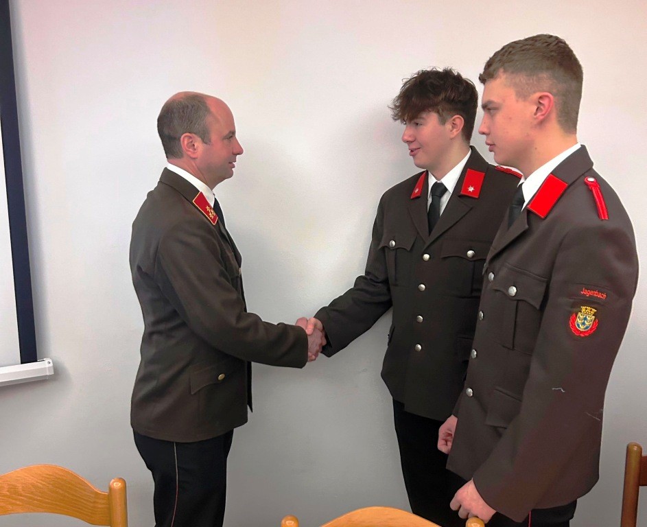 Die im Jahr 2025 von der Feuerwehrjungend überstellten Mitglieder Julian Thaler und Lukas Thaler wurden durch HBI Harald Thaler angelobt und zum Feuerwehrmann befördert.