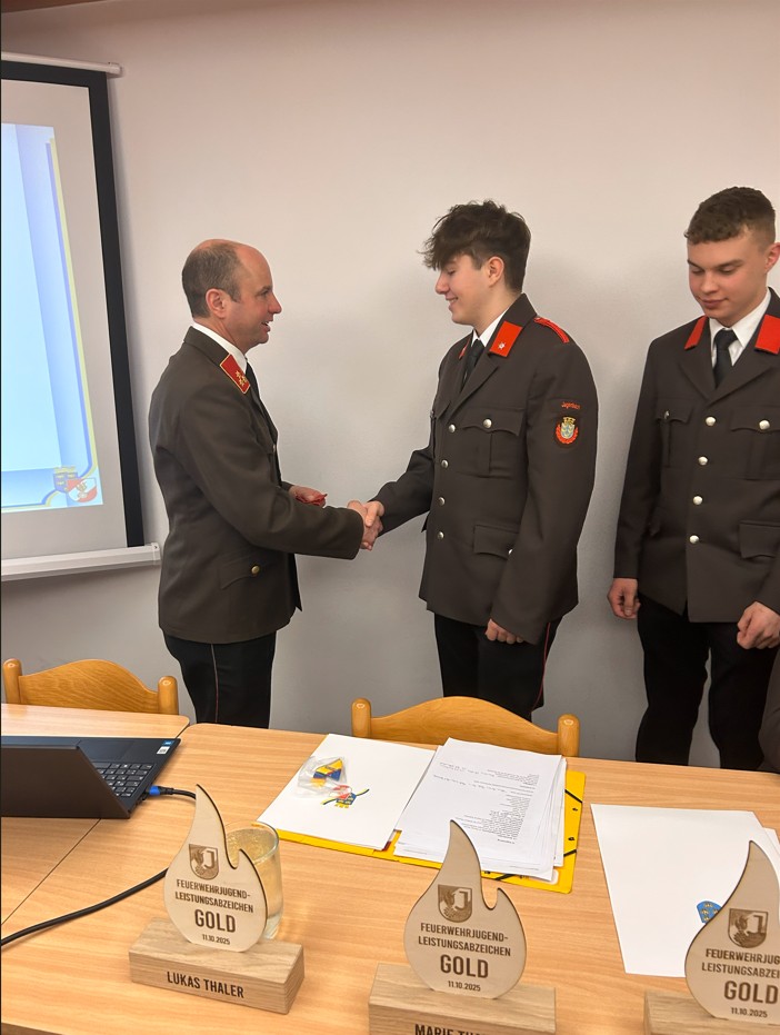 für das Feuerwehrjugendleistungsabzeichen in Gold überreicht.